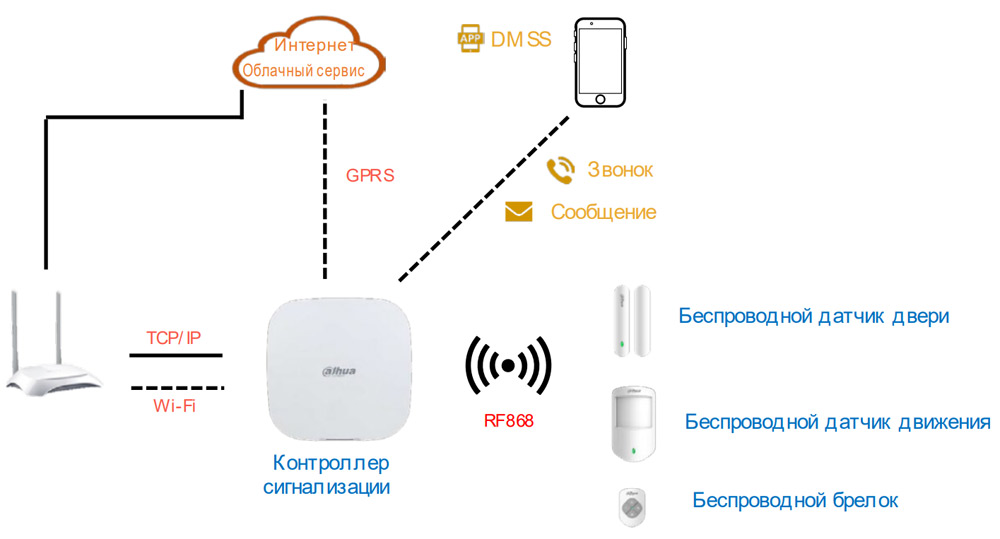 • Поддержка до 150 беспроводных периферийных устройств (6 звуковых оповещателей, 64 беспроводных брелока)
