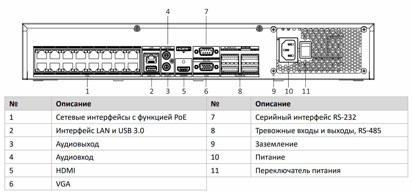 • Тревожный вход / выход может быть представлен опционально для некоторых моделей. Устройство с /Alarm16 + 9 в названии имеет 16 тревожных входов и 9 тревожных выходов.
