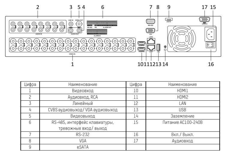 • Аналоговые, HD-TVI, CVI и AHD камеры: 32 канала BNC (1.0 Vp-p, 75 Ω), поддержка управления по коаксиальному кабелю