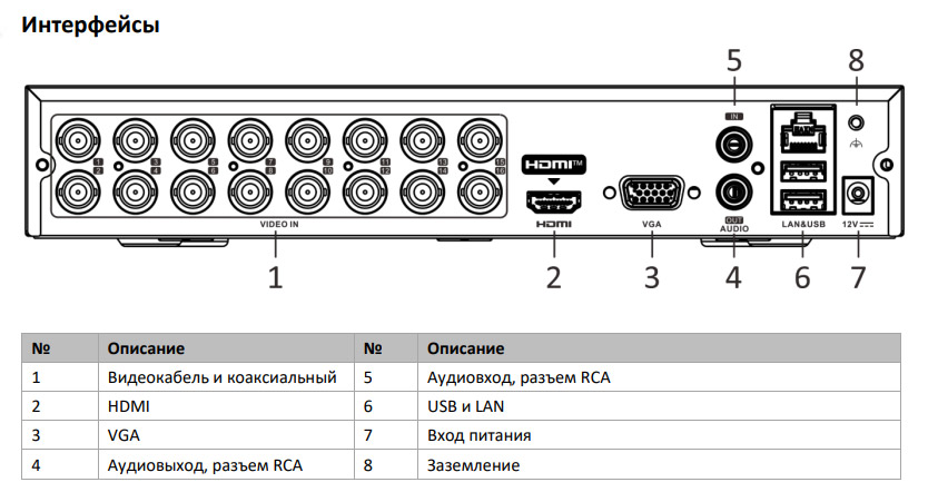 • Аналоговый видеовход: 16 каналов BNC (1.0 В p-p, 75 Ом), поддержка соединения с помощью коаксиального кабеля