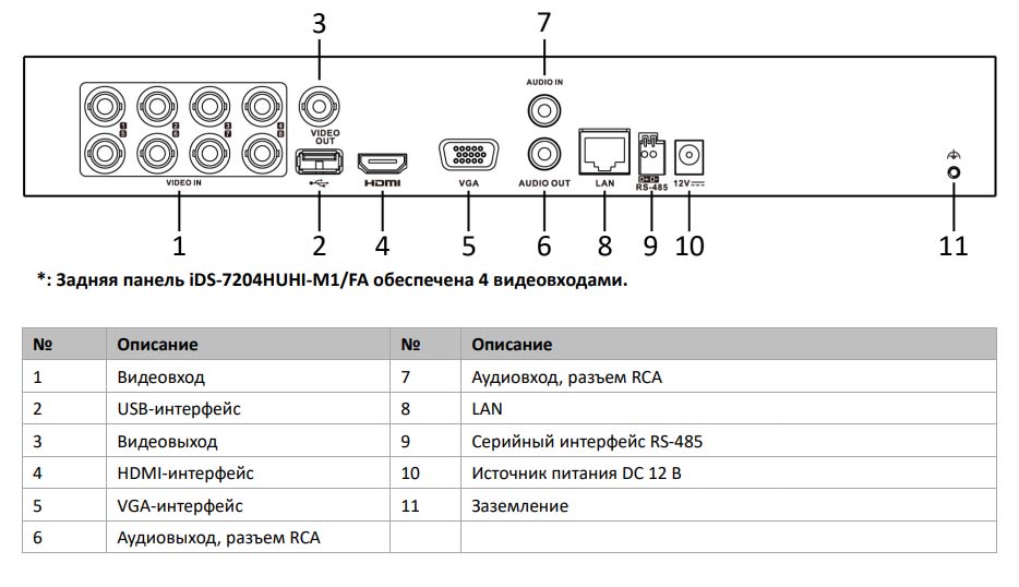 • Аналоговый видеовход: 4 каналов. Интерфейс BNC(1.0 В p-p, 75 Ом), поддерживает подключение по коаксиальному кабелю