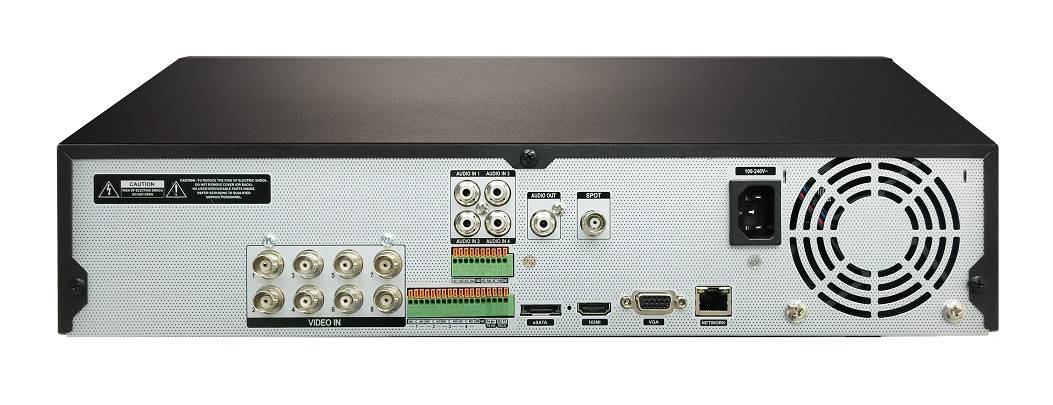 Данная модель регистратора по-прежнему позволяет подключать HD-TVI, AHD, а также традиционные CVBS камеры, но максимальное разрешение записи возросло до 5 Мп.