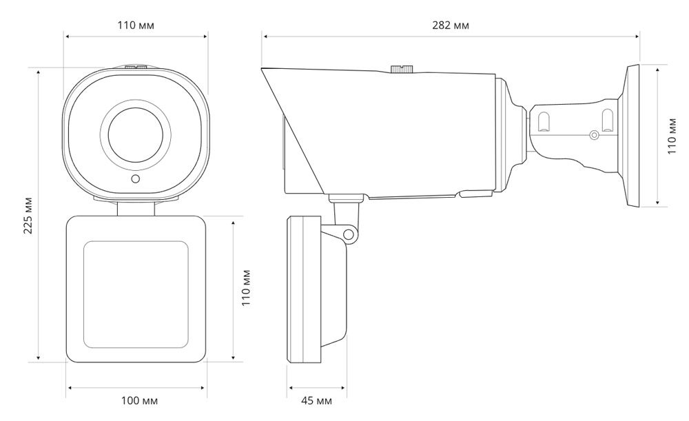 • ИК-подсветка: внешний ИК-прожектор, дальность до 180 м, 850 нм