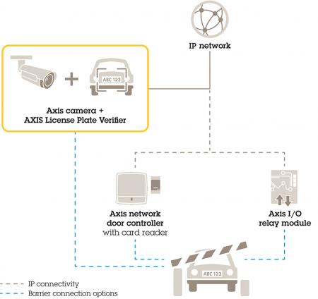 Простота установки и управления комплектом AXIS P1445-LE-3 объясняется тем, что в него уже включена камера и программное обеспечение, которое необходимо для управления основными функциями въезда и выезда автомобилей. Приложение из комплекта считывает номерные знаки автомобилей, двигающихся по одной полосе со скоростью до 30 км/ч, и сверяет их со списками номеров, имеющих или не имеющих право доступа, которые хранятся в памяти камеры. Указанный комплект представляет собой автономное решение. Это означает, что обработка и хранение данных осуществляются полностью в самой камере. Поэтому нет необходимости устанавливать внешний видеорегистратор или центральный сервер.