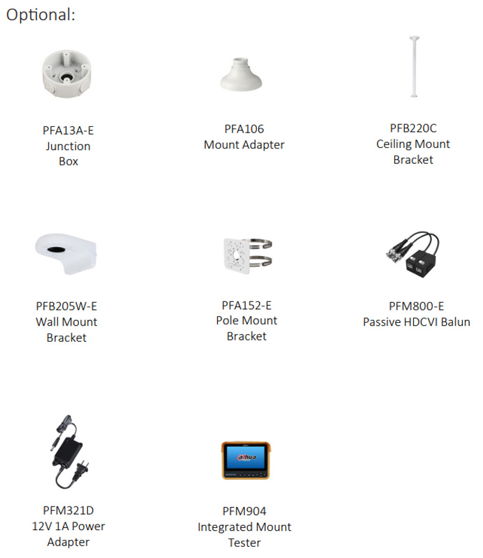IP67: Видеокамера прошла тщательное тестирование на проникновение влаги и пыли внутрь корпуса. Она надежна защищена от пыли, и ее корпус гарантирует работоспособность при погружении в воду на глубину 1 м в течение 30 минут. Широкий диапазон напряжений: Видеокамера допускает ±30% отклонения входного напряжения и хорошо приспособлена для работы в уличных условиях с нестабильным напряжением.