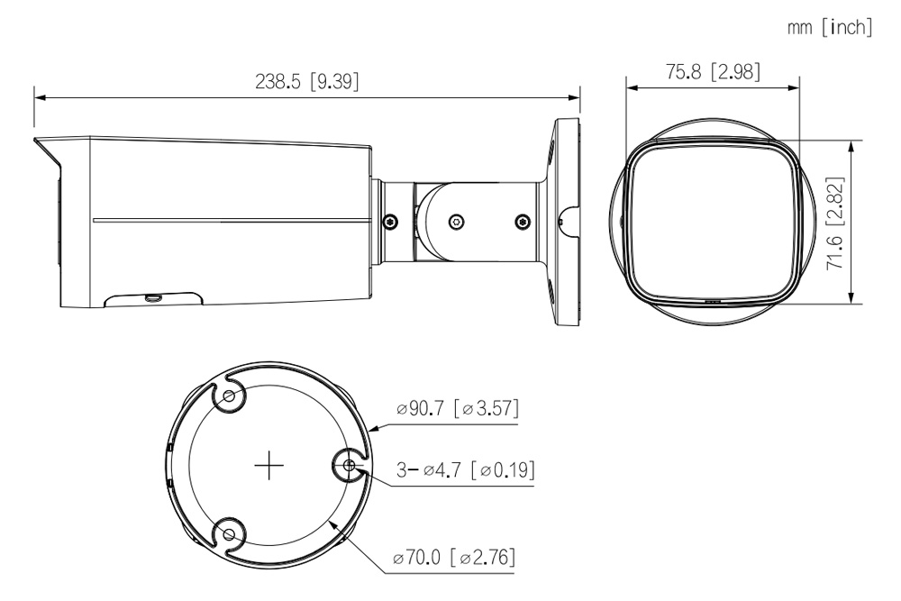 • Размеры: 238,5 мм × 90,7 мм × 90,7 мм