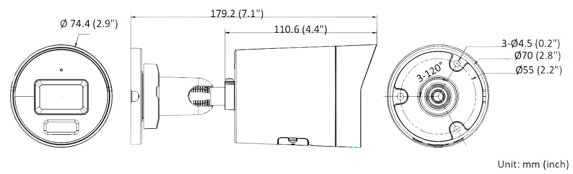 • Размеры: Ø 74.4 × 179.2 мм (Ø 2.9 × 7.1″)