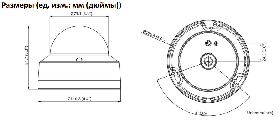 Настройка угла обзора камеры | Поворот: 0-355°; Наклон: 0-75°; Вращение: 0-355° |