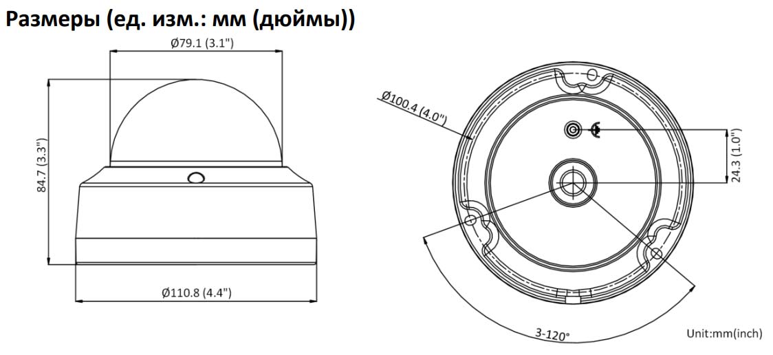 Настройка угла обзора камеры | Поворот: 0-355°; Наклон: 0-75°; Вращение: 0-355° |