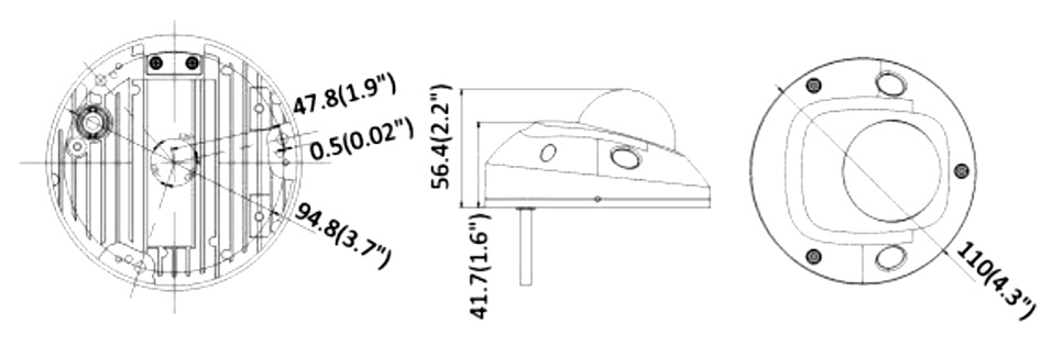 • Размеры: Ø 110 × 56.4 мм (Ø 4.3 × 2.2″)