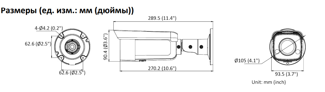 • Размер камеры: Ø 105 × 289.5 мм (Ø 4.1 × 11.4″)