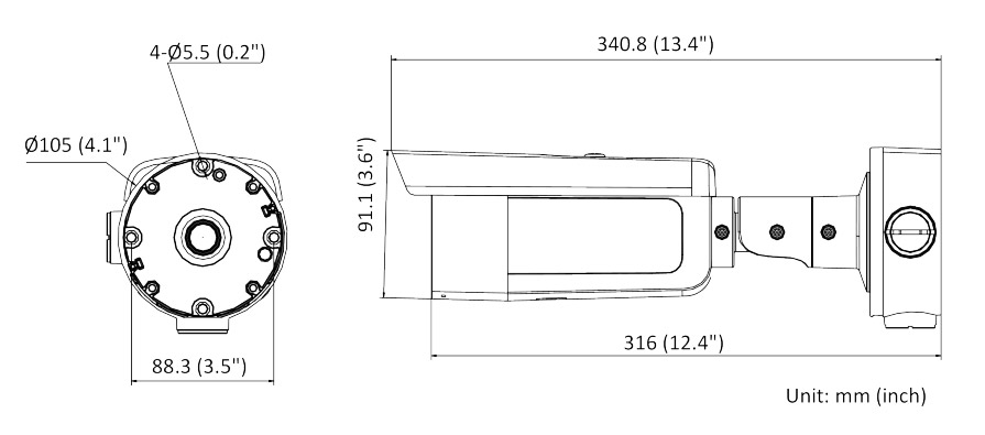 • Размер камеры: Ø 105 × 340.8 мм (Ø 4.1 × 13.4″)