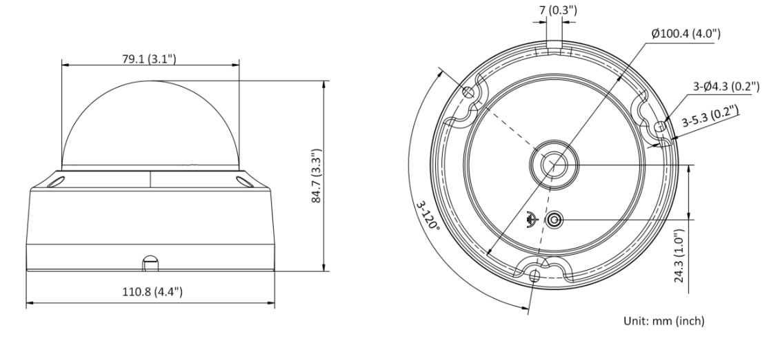 • Размеры: Ø 110.8 × 84.7 мм (Ø 4.4 × 3.3″)