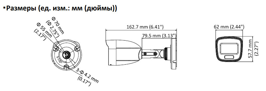 Улучшение изображения | D-WDR (цифровой), ColorVu, AGC, BLC, HLC, DNR, AWB |