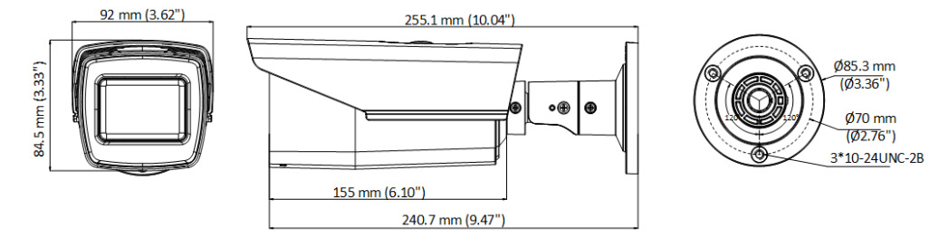 • Размеры: 84.5 × 92 × 255.1 мм (3.33 × 3.62 × 10.04″)