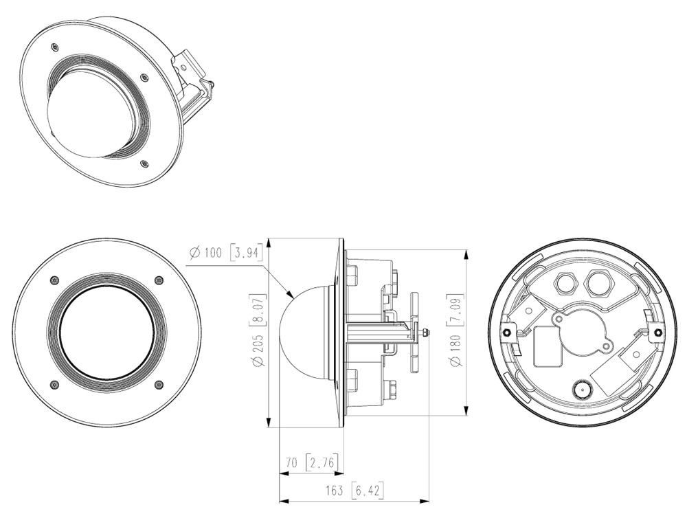 Камера имеет модульную конфигурацию, что упрощает процесс монтажа и обеспечивает возможность легкого доступа для ремонта или замены комплетующих, например, для проведения профилактических осмотров или изменения цвета корпуса при смене интерьера. Выполнена в алюминиевом корпусе для встраиваемой (врезной) установки в потолочные/стеновые фальш конструкции и защищена по стандартам IP52 (пыль/влага), за счет чего может устанавливаться в местах с повышенным уровнем запыленности/влажности.