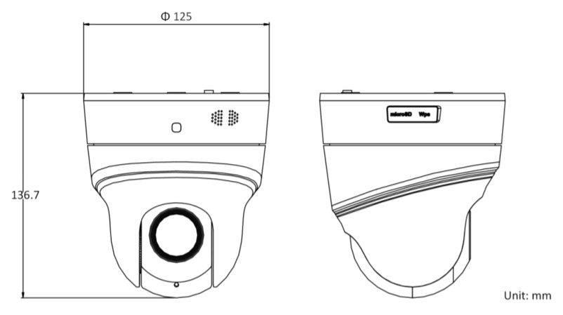 • Размеры: Φ 125 × 136.7 мм (Φ 4.92 × 5.38″)