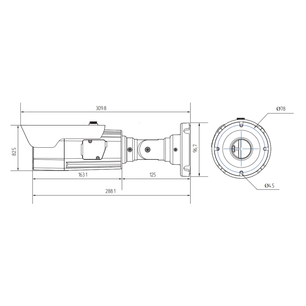 - Габаритные размеры: 309.8(Д) × 96.7(Ø )мм