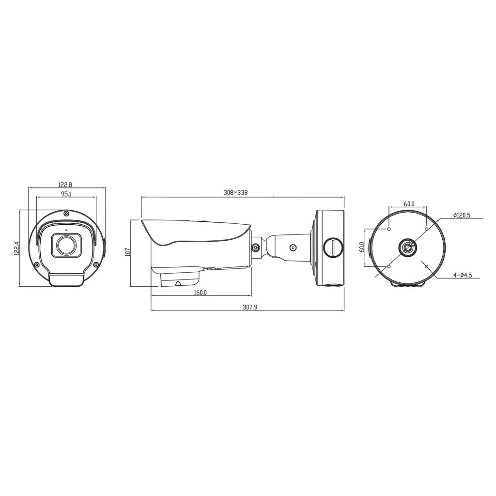 - Габаритные размеры: 308х122.8х122.4 мм