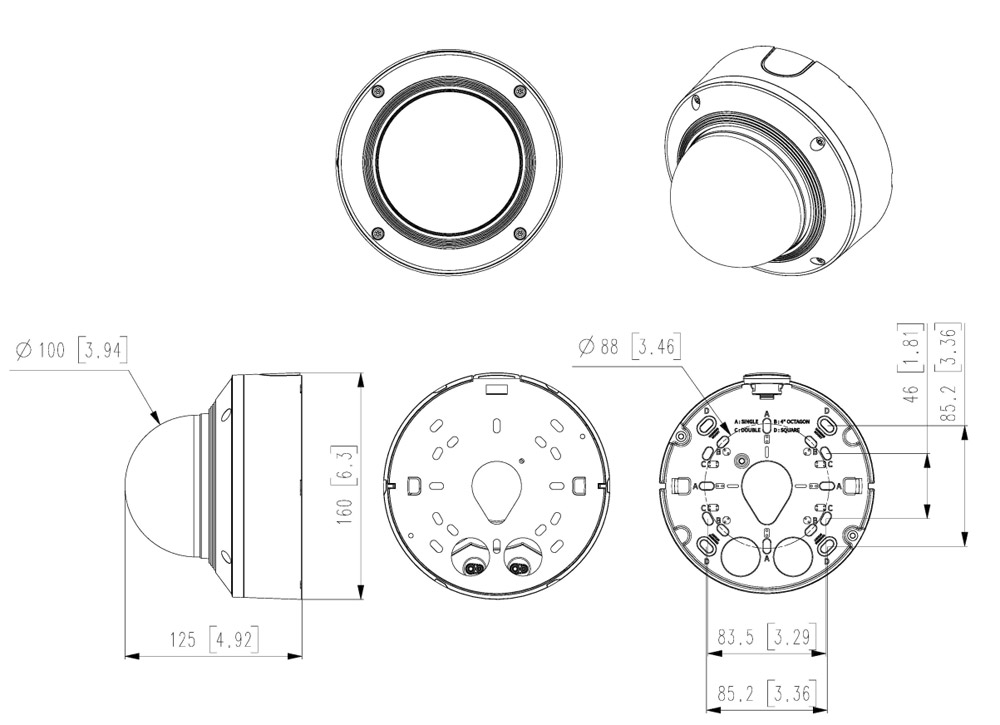 Камера выполнена в алюминиевом корпусе и имеет модульную конфигурацию, что упрощает процесс монтажа и обеспечивает возможность легкого доступа для ремонта или замены комплетующих, например, для изменения цвета корпуса при изменении интерьера. Она защищена по стандартам IP52 (пыль/влага) и IK10 (механические воздействия), за счет чего может устанавливаться в местах с повышенным уровнем запыленности/влажности и высокой вероятностью внешних физических воздействий.