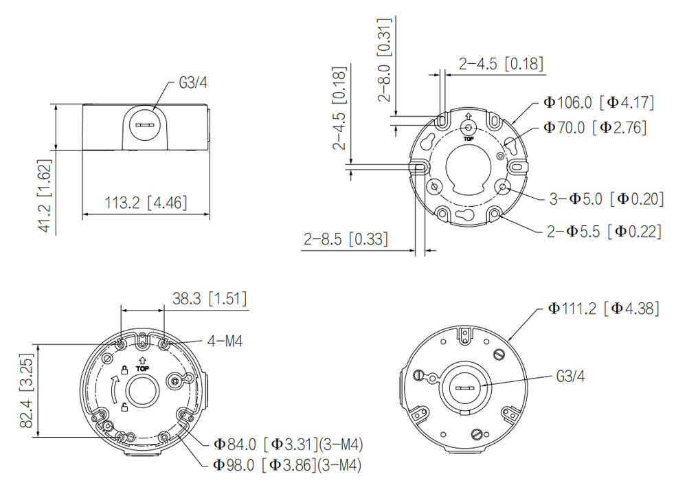 • Отверстие для монтажа: Ø84×3; Ø98×3; Ø91×4 (38.3×82.4 мм)