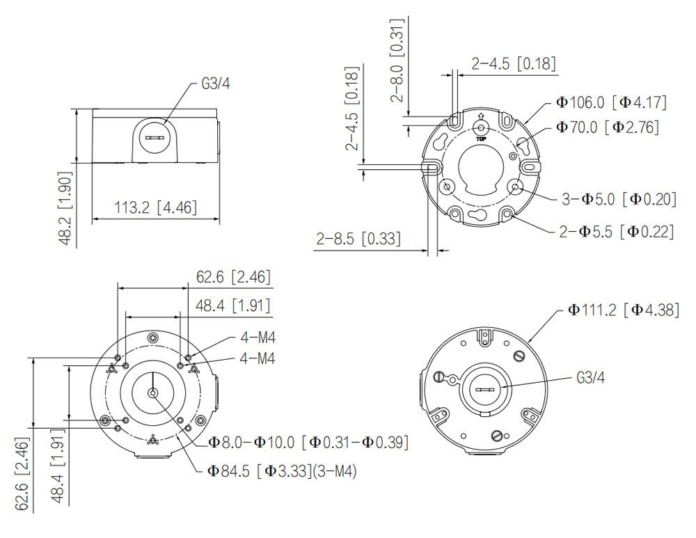 • Отверстие для монтажа: Ø68.5×4 (48.4×48.4); Ø84.5×3; Ø88.5×4 (62.6×62.6)
