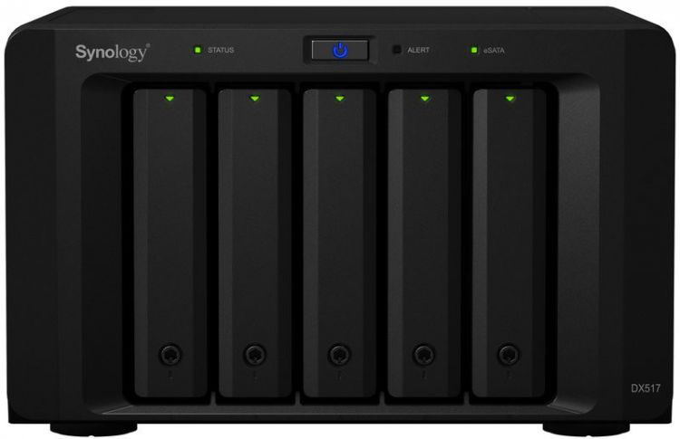 С легкостью добавьте 5 дополнительных дисков к Synology DiskStation1. DX517 представляет собой устройство расширения с отсеками для дисков типоразмера 3,5 и 2,5 дюйма с интерфейсом SATA, которое позволяет без прерывания работы расширять тома, а также может служить в качестве локального места назначения резервного копирования.
