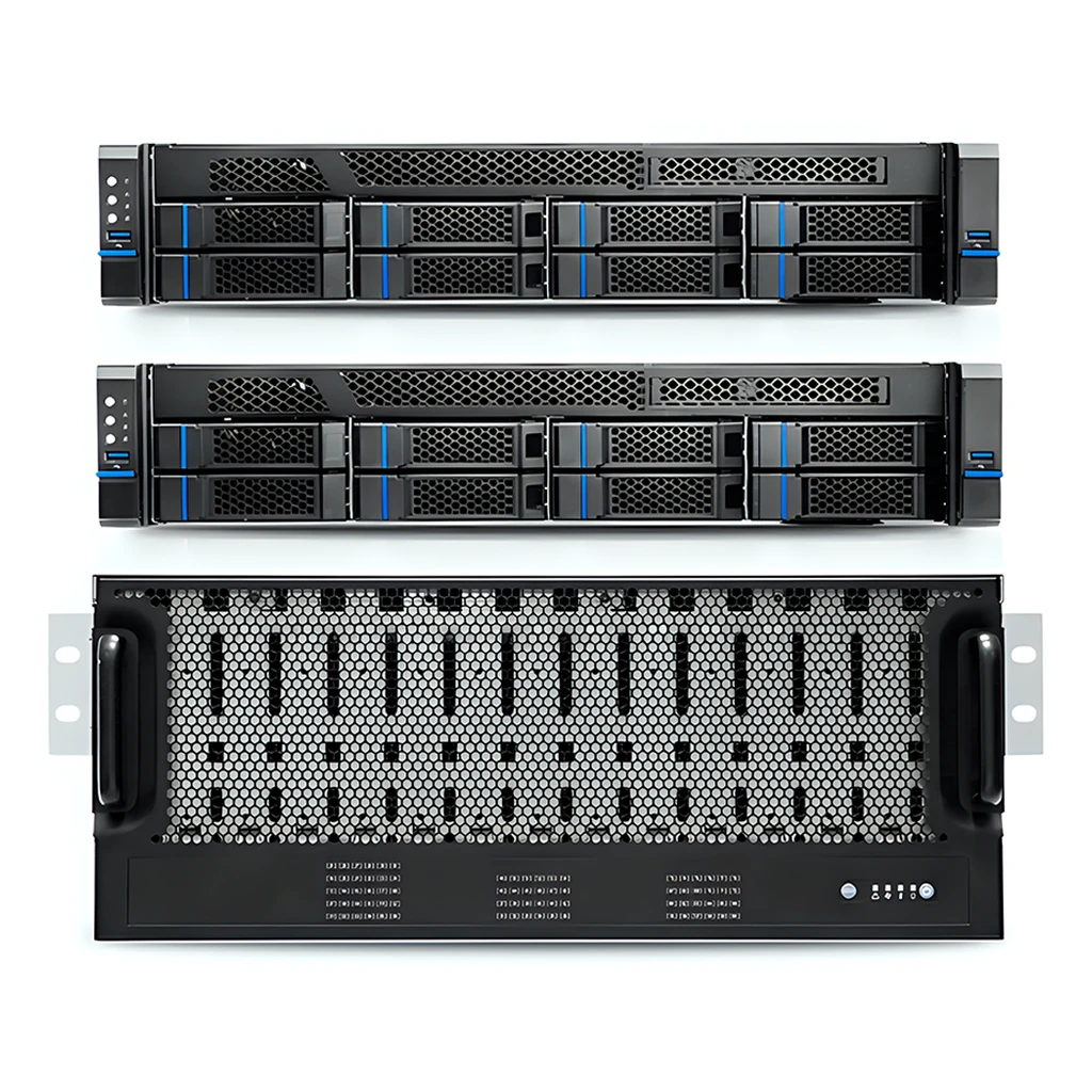 Корпус RV-SS4100 PRO-RH-RX выполнен в стойковом исполнении и состоит из трех модулей, обеспечивая простую интеграцию в существующую ИТ-инфраструктуру. Модуль управления поддерживает удалённый доступ через IPMI-контроллер Aspeed AST2500, что делает систему удобной в эксплуатации и обслуживании. Система питания включает шесть блоков мощностью до 1400 Вт каждый с поддержкой резервирования, что гарантирует стабильную работу при высоких нагрузках.