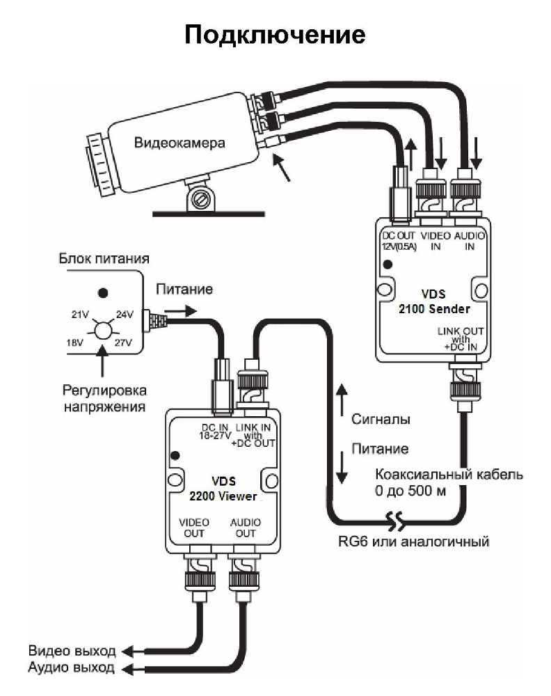 • Используется для передачи цветного видеосигнала на расстояние до 300 метров, чѐрно-белого видеосигнала – до 600 метров