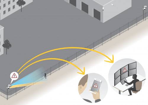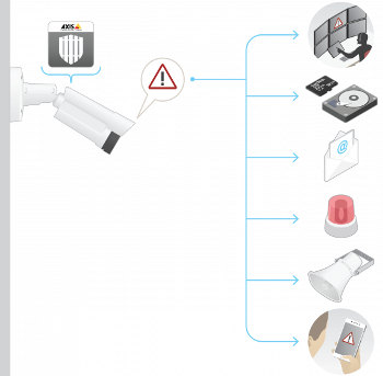 Приложение AXIS Perimeter Defender интегрируется с функциями управления событиями камеры Axis. Это означает, что вы можете настраивать действия, автоматически предпринимаемые системой при обнаружении нарушителей. Система может автоматически транслировать видео на охранном пульте или отправлять в службу безопасности уведомления по электронной почте, чтобы охранники смогли своевременно реагировать на ситуацию. Камеру можно настроить таким образом, чтобы записывать и передавать видео только при тревоге. Это облегчит просмотр и поиск нужных записей. Ещё можно запрограммировать камеру на включение звуковой тревоги, чтобы отпугнуть нарушителей.
