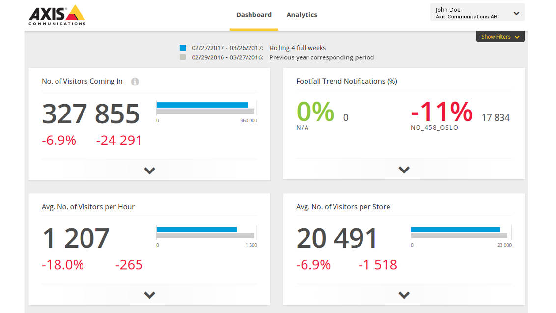 • Представляет статистические данные из приложений AXIS Store Optimization Suite и AXIS Loss Prevention Suite.
