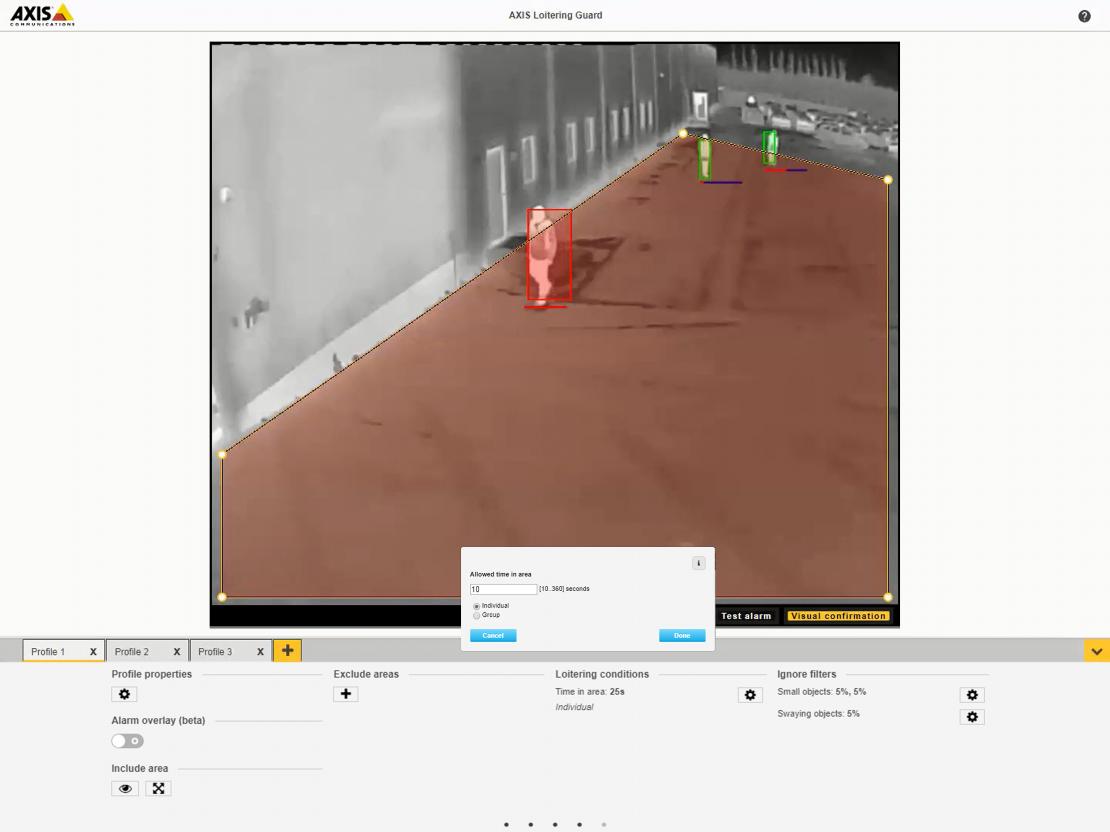 AXIS Loitering Guard отслеживает движущиеся объекты и инициирует событие, если они находятся в определенной области подозрительно долго. Аналитическое приложение идеально подходит для обнаружения праздношатания на полуобщественных территориях, где нет интенсивного движения, в том числе в нерабочее время на автостоянках, в школьных дворах и вдоль ограждений. Скачайте его бесплатно для использования с совместимыми устройствами сетевого наблюдения.