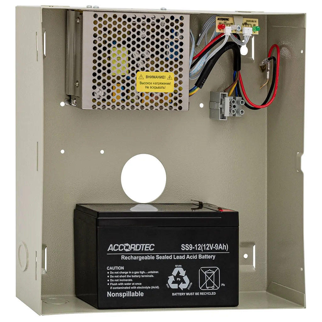 Блок бесперебойного питания AccordTec ББП-50 ТР исп.1 предназначен для обеспечения стабильного электропитания систем видеонаблюдения, охранно-пожарных сигнализаций и СКУД. Устройство соответствует требованиям ТР 043/2017 (ГОСТ 53325-2012) и рассчитано на работу в широком диапазоне входного напряжения от 110 до 250 В. Металлический корпус надежно защищает внутренние компоненты, а настенный монтаж упрощает установку.