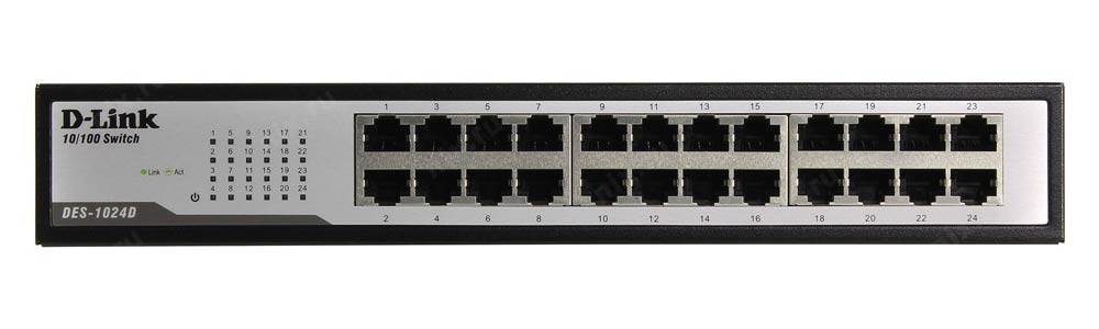 Неуправляемый коммутатор DES-1024D с 24 портами 10/100Base-TX представляет собой недорогое решение для сетей SOHO и предприятий малого и среднего бизнеса (SMB). Каждый порт коммутатора обеспечивает передачу файлов и потокового мультимедиа на скорости до 200 Мбит/с в режиме полного дуплекса без задержек. DES-1024D поддерживает технологию Plug-and-play, позволяющую подключать к нему устройства без произведения дополнительных настроек.
