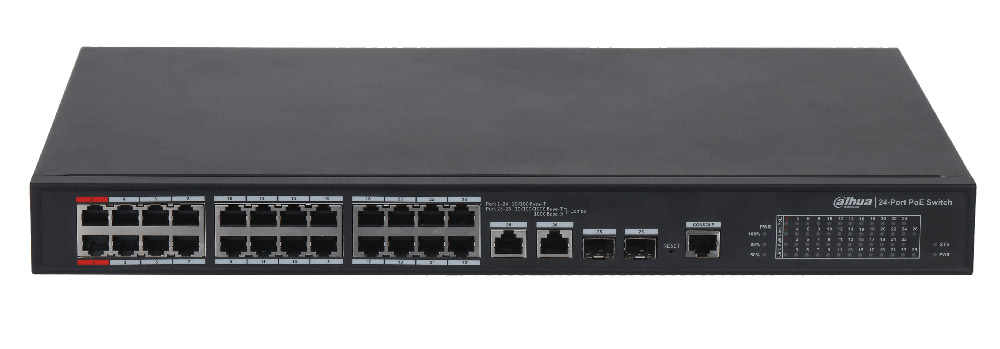 PFS4226-24ET-240 – специализированный коммутатор с поддержкой подачи питания PoE, который разработан для индустрии безопасности и значительно отличается от обычных коммутаторов общего назначения. Функция управления питанием PoE позволяет эффективно контролировать его распределение и мониторить его в режиме реального времени. Коммутаторы этой серии широко используются в системах видеонаблюдения. Данная модель отличается поддержкой PoE увеличенной дальности и Hi-PoE на первых двух портах.