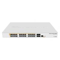 Коммутатор 3 уровня (Layer 3) с функциями маршрутизатора на базе SwOS / RouterOS имеет 28 независимых портов. Из них 24 гигабитных Ethernet-порта с автоматическим распознаванием подключённых PoE-устройств.