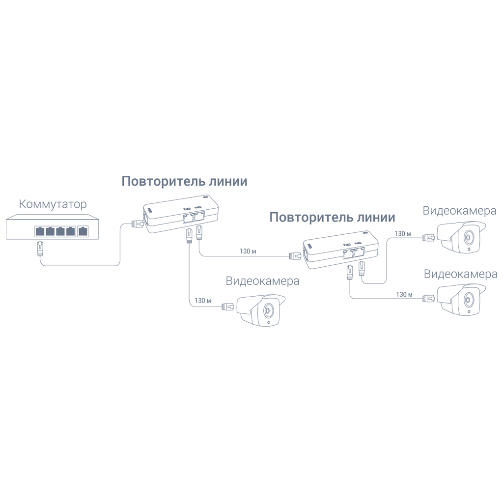 - Увеличение дальности PoE и Ethernet без дополнительного оборудования