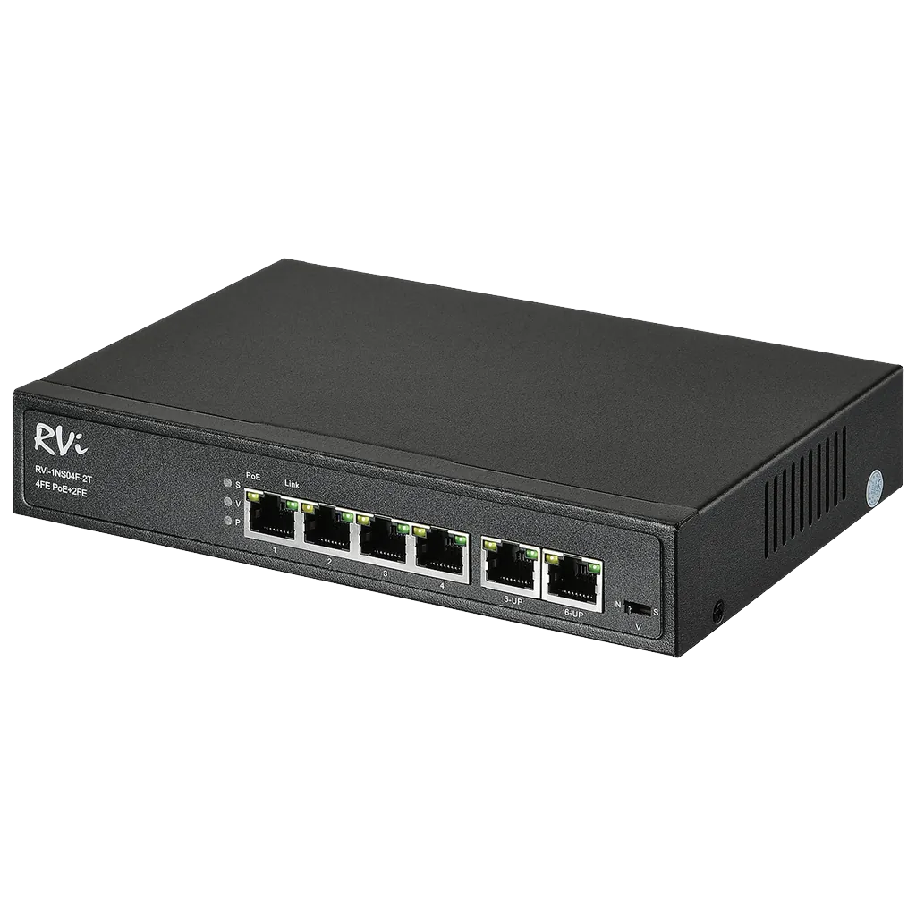 Сетевой коммутатор RVi-1NS04F-2T — это неуправляемое устройство, предназначенное для создания локальных сетей с поддержкой технологии PoE. Он применяется для подключения IP-камер, видеорегистраторов и других сетевых устройств, обеспечивая не только передачу данных, но и питание по одному кабелю. Благодаря своей компактной конструкции и универсальности он идеально подходит для построения видеонаблюдения и небольших корпоративных сетей.