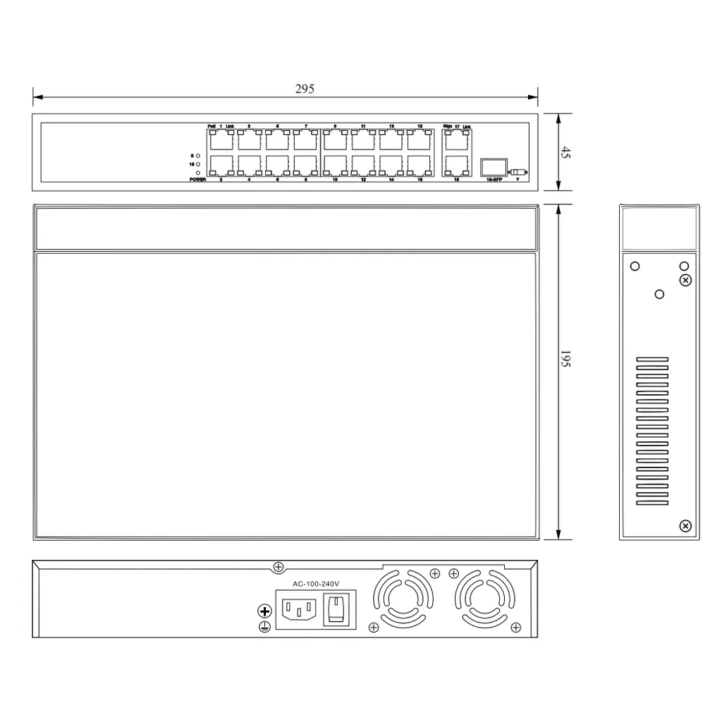- Количество портов доступа (downlink): 16 RJ45 портов 10/100 Мбит/с с поддержкой РоЕ