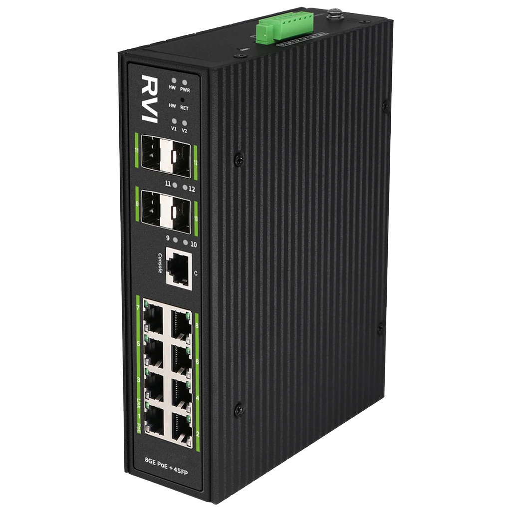 Коммутатор RVi-1NSIM8GP-4S представляет собой высокопроизводительное сетевое оборудование промышленного исполнения, специально разработанное для построения надежных и отказоустойчивых сетей в сложных условиях эксплуатации. Устройство поддерживает до 8 портов доступа с поддержкой PoE, что позволяет одновременно передавать данные и питание к удалённым устройствам, таким как IP-камеры или точки доступа. Благодаря 4 независимым SFP-портам uplink возможна организация высокоскоростных магистральных соединений на дальние расстояния.
