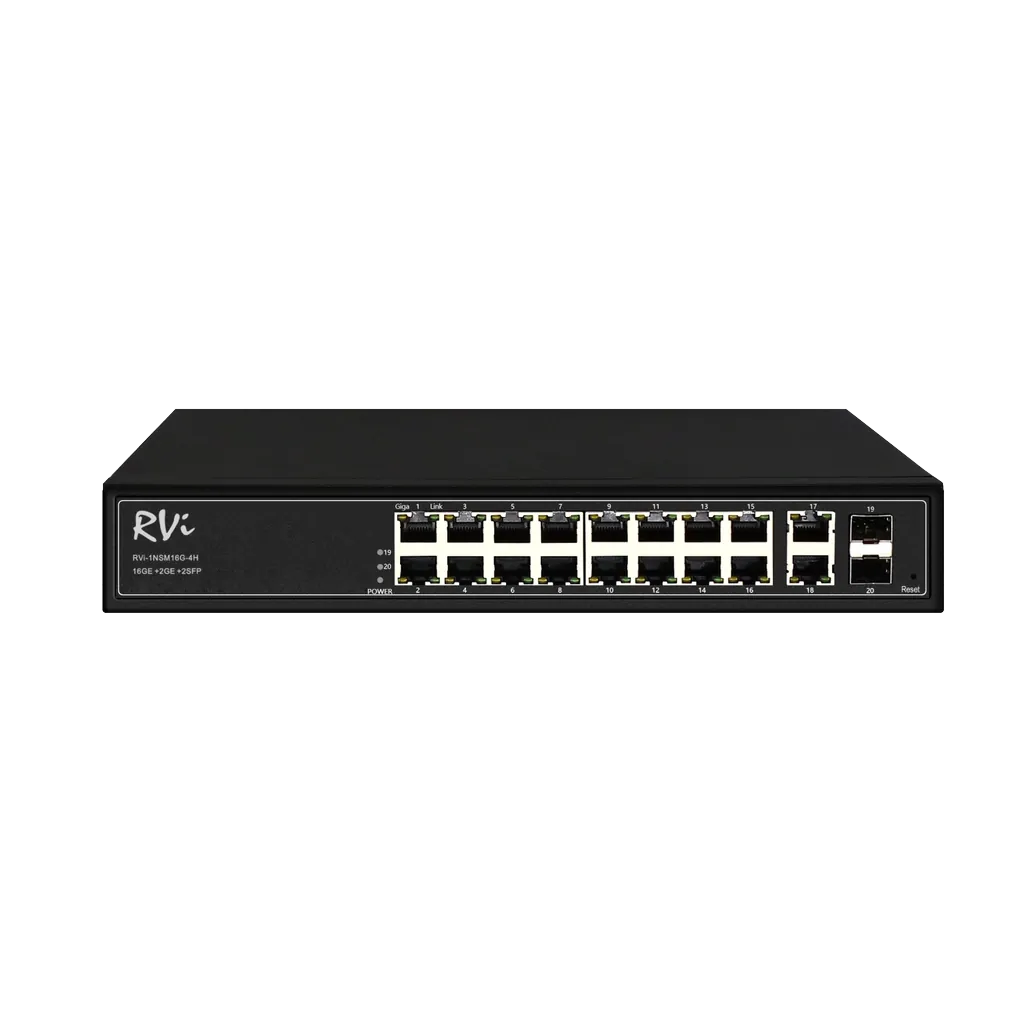 Коммутатор оснащен мощной коммутационной матрицей на 56 Гбит/с и способен обрабатывать до 40,32 миллионов пакетов в секунду, что позволяет использовать его в сетях с высокой нагрузкой. Встроенные функции защиты от перенапряжения и статического электричества обеспечивают безопасность эксплуатации в сложных условиях. Кроме того, поддержка протоколов управления, таких как SNMP, IGMP Snooping и RMON, делает RVi-1NSM16G-4H удобным инструментом для сетевых администраторов.