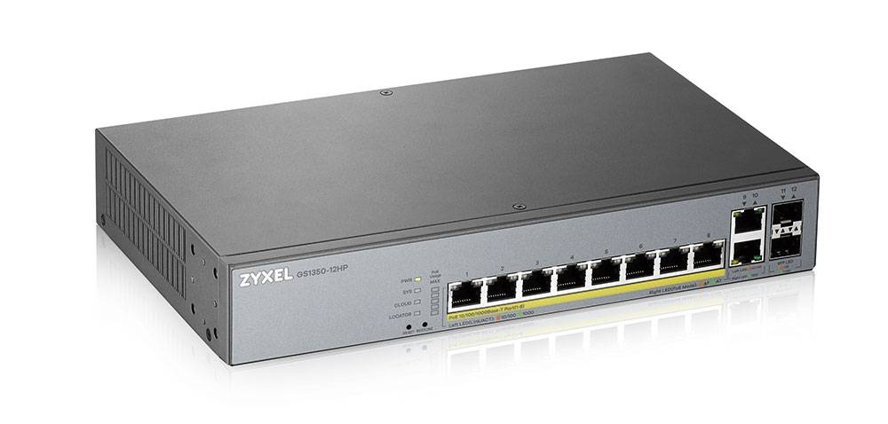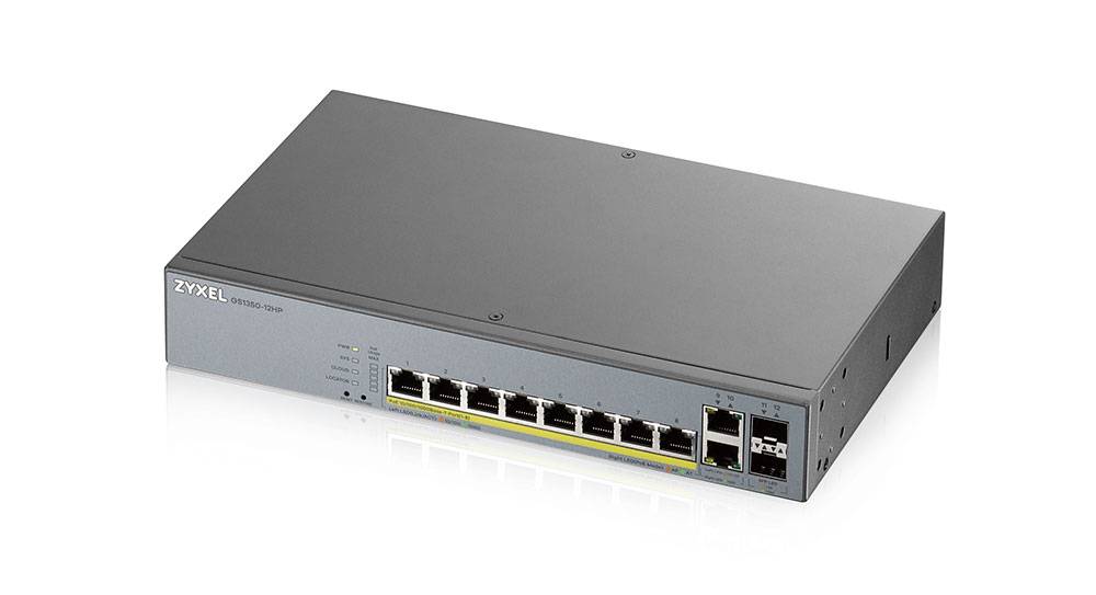 • GS1350-12HP - 8-портовый смарт-управляемый гигабитный PoE-коммутатор с гигабитным аплинком