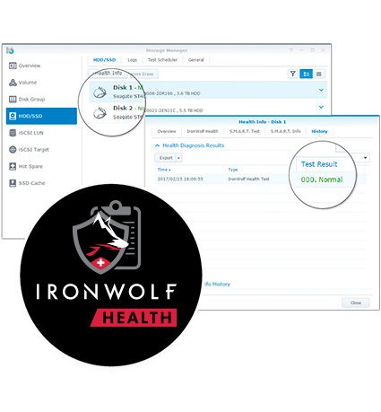 ПО IronWolf Health Management (IHM) позаботится о бесперебойной работе вашего накопителя. Устанавливая жесткие диски IronWolf или IronWolf Pro в совместимую систему NAS, вы повышаете ее общую надежность, поскольку ее работа будет постоянно контролироваться, а при обнаружении неполадок пользователи будут оповещаться незамедлительно.