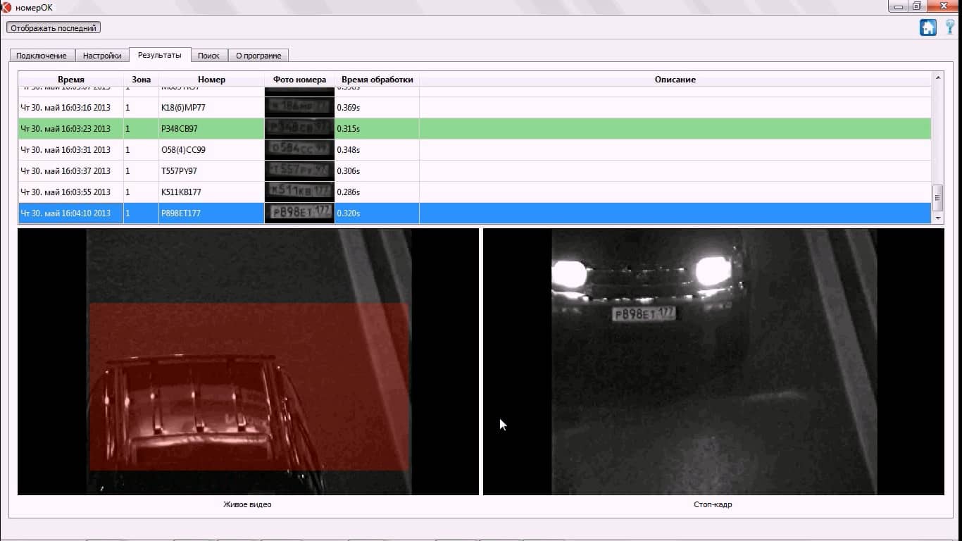 • Дата распознавания номера, марки, модели, типа и цвета машины