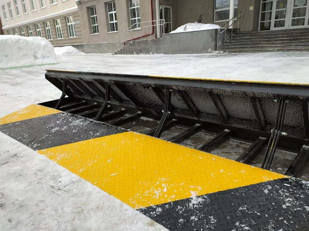 - Пологие скаты выполнены из рифленого металла, чтобы обеспечить лучшее сцепление колес и предотвратить соскальзывание.