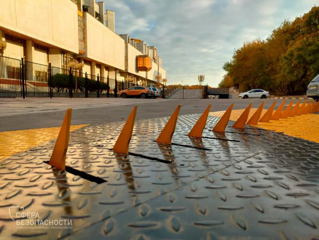 Препятствие противотаранное шипованное ППШ-СБ 4000 представляет собой высокоэффективное инженерное средство защиты, предназначенное для пресечения несанкционированного въезда автотранспорта на охраняемую территорию. Функцию принудительной остановки колёсного автотранспорта противотаранные дорожные шипы (tyrekiller, как их еще называют) выполняют посредством повреждения шин транспортного средства металлическими ножами (шипами) высотой 110 - 200 мм. За счёт наличия металлических ножей (шипов) устройство эффективно выполняет функцию принудительной остановки транспортных средств, прокалывая их шины при попытке наезда. ППШ-СБ незаменим в местах, где требуется высокий уровень антитеррористической защиты и инженерного укрепления.