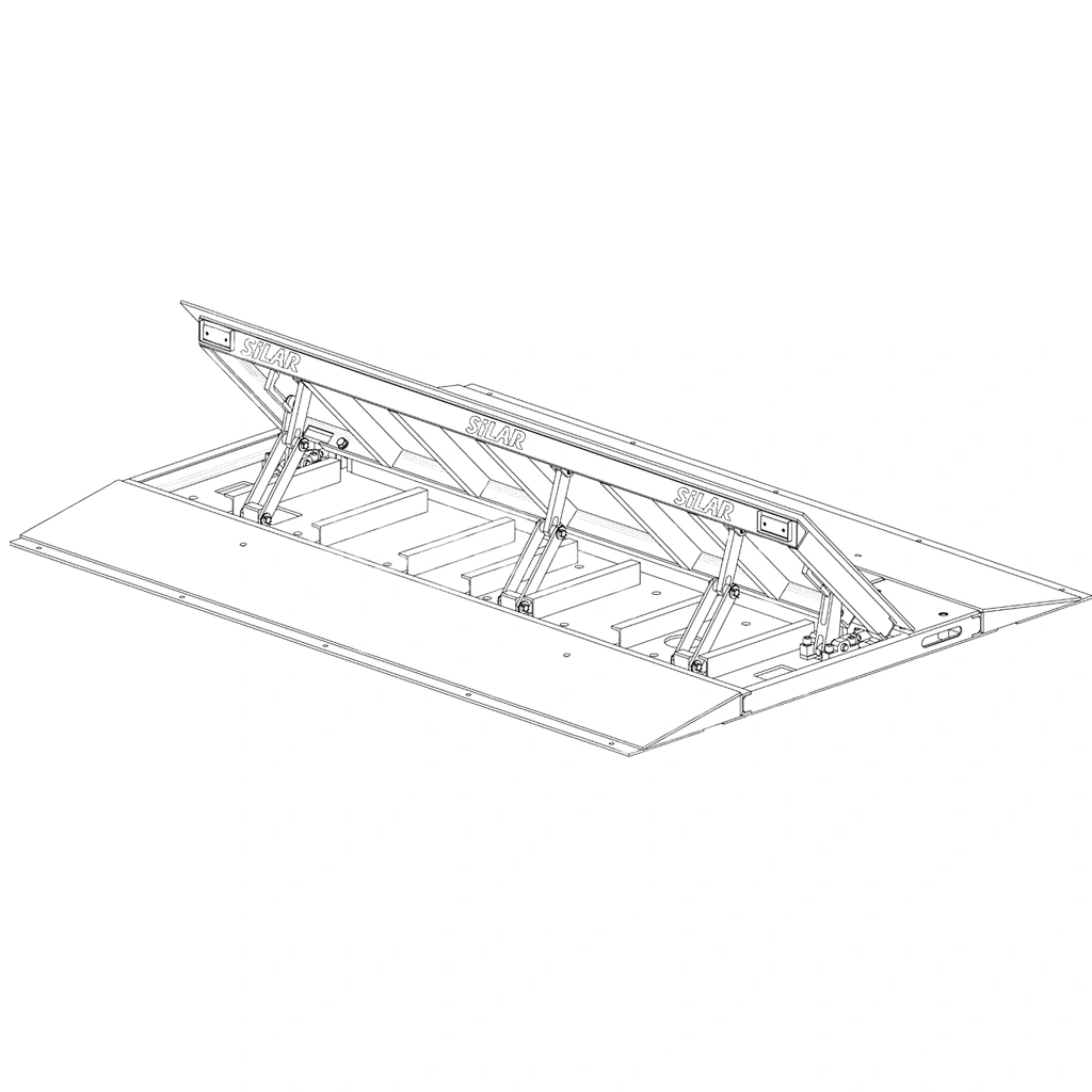 Дорожный блокиратор Silar ПЗП 3000 ГН — гидравлическая подъёмная преграда накладного типа, предназначенная для оперативного перекрытия проезжей части и предотвращения несанкционированного въезда. Конструкция устанавливается поверх дорожного полотна (без врезки), включает основную платформу и пандусы для плавного въезда/съезда и работает от внешней гидростанции. Решение ориентировано на КПП, промышленные и режимные объекты, где требуется высокая скорость реагирования и гарантированная остановка транспорта.