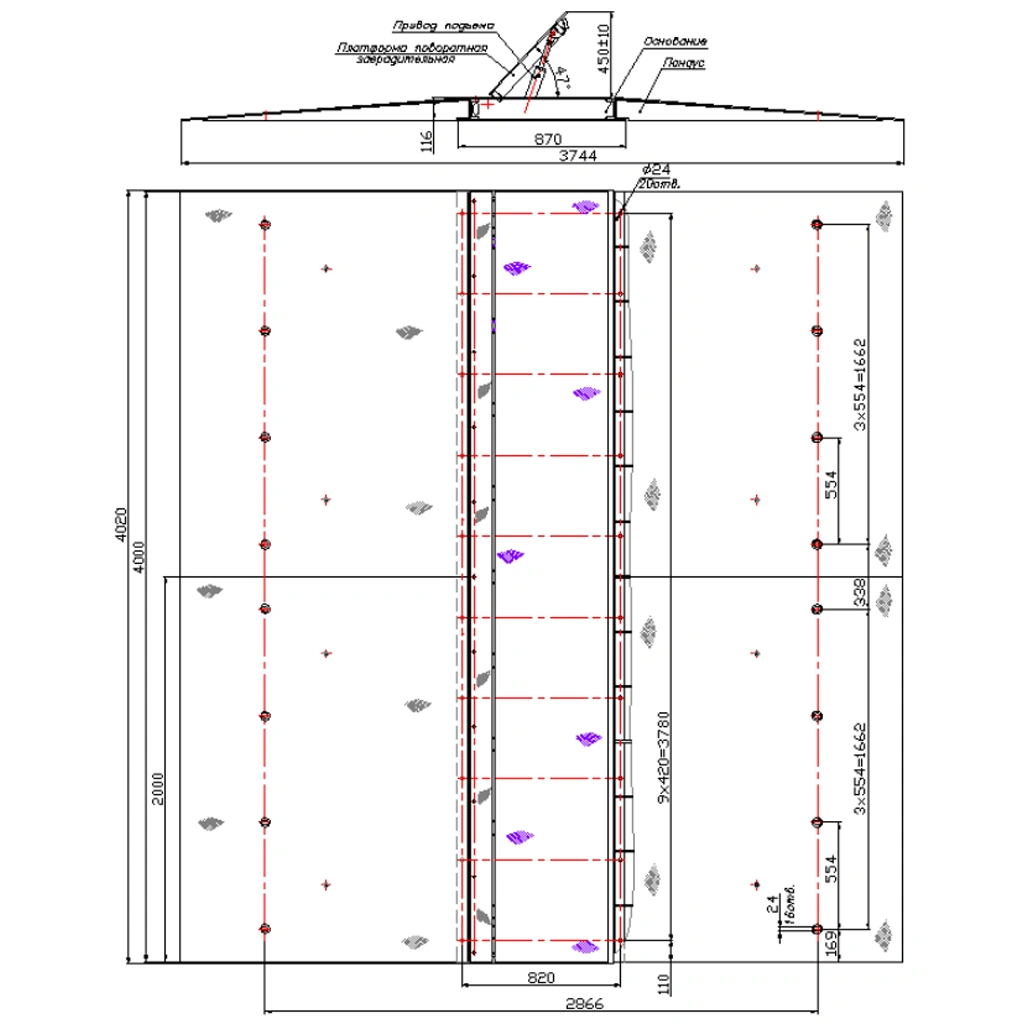- ПЗП 4000Гн - Длина 4020 мм, Ширина с пандусами 3744 мм, Высота преграды 116 мм, Высота подъема 450 мм