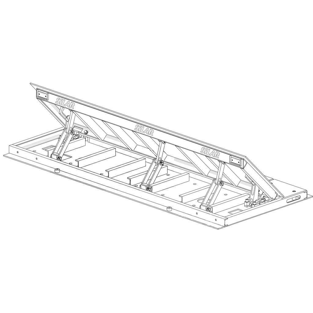 Блокиратор Silar ПЗП 6000 ГЗ рассчитан на круглогодичную эксплуатацию при температурах от −60 °C до +60 °C и соответствует климатическому исполнению УХЛ1 по ГОСТ 15150. Благодаря модульной компоновке и возможности объединения секций, данная модель позволяет перекрывать проезды значительной ширины. Гидравлический привод обеспечивает высокую скорость срабатывания, плавность хода и надежную фиксацию платформы в рабочем положении, а использование двух гидроцилиндров повышает устойчивость и долговечность системы.
