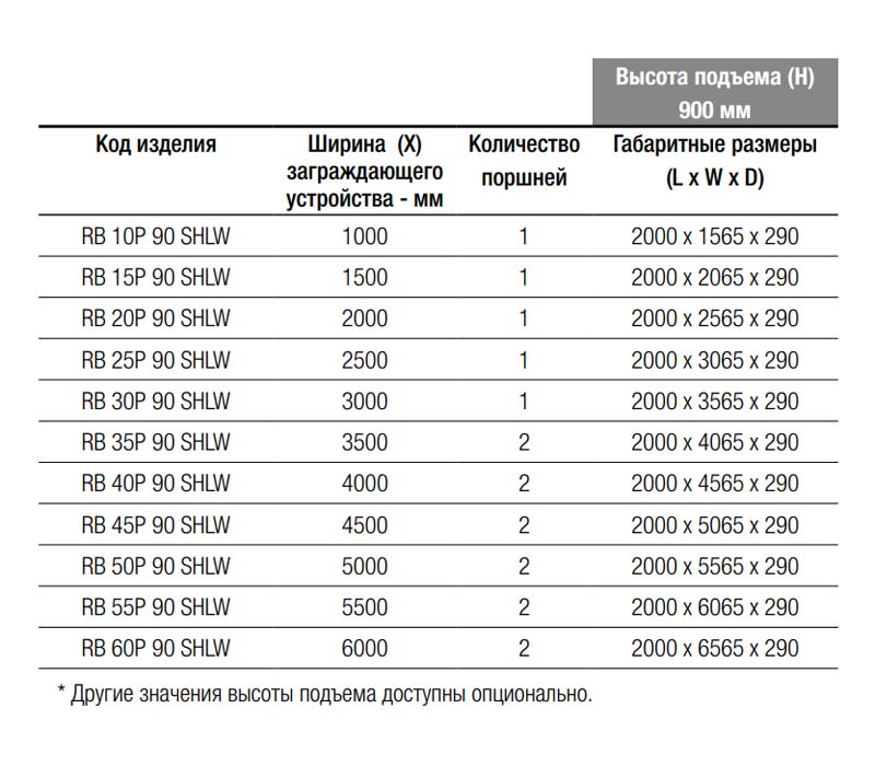 Телескопические лицевые панели, гидроаккумулятор для функции быстрого подъема EFO (однопоршневая или двухпоршневая системы), электродвигатель 24 В пост. тока на случай сбоя электроснабжения (50 подъемов и 50 опусканий), подогреватель масла (для масляного резервуара), маслоохладитель, подогреватель для электронных компонентов, погружной насос, светодиодный светофор (диаметр 200/300 мм, красный/зеленый, корпус из нержавеющей стали марки 304 с электростатическим порошковым покрытием), светофорная опора (горячеоцинкованная сталь, электростатическое порошковое покрытие), шлейфовый детектор (с двойным контактом), предохранительные датчики (с опорами высотой 50 см), корпус IP67 (для ПЛК, импульсного источника питания, разъемов и прочих компонентов внутри силовой установки), беспроводной пульт дистанционного управления (приемник и передатчик), внешние кнопки, горячее цинкование, гидравлическая установка двойного действия, двухскоростная гидравлическая установка, ПЛК с диагностическим дисплеем, передние мигающие индикаторы, датчик уровня масла, другие размеры изделия.